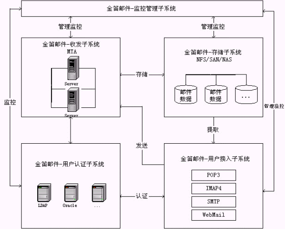 金笛郵件系統(tǒng)五大功能模塊邏輯關(guān)系圖