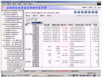 深圳市金點(diǎn)科技有限公司率先采用國(guó)際先進(jìn)的商務(wù)智能(BI)和數(shù)據(jù)挖掘技術(shù)、借鑒國(guó)外證券行業(yè)成熟的管理經(jīng)驗(yàn),結(jié)合國(guó)內(nèi)證券行業(yè)的特點(diǎn),推出"證券經(jīng)紀(jì)業(yè)務(wù)綜合管理分析系統(tǒng)",該系統(tǒng)是證券經(jīng)紀(jì)業(yè)務(wù)的集中管理和決策分析系統(tǒng),具有很強(qiáng)的靈活分析功能。該系統(tǒng)主要是對(duì)證券經(jīng)紀(jì)業(yè)務(wù)經(jīng)營(yíng)決策、市場(chǎng)營(yíng)銷(xiāo)和客戶(hù)服務(wù)進(jìn)行管理和分析,為證券經(jīng)紀(jì)業(yè)務(wù)管理部門(mén)加強(qiáng)對(duì)營(yíng)業(yè)機(jī)構(gòu)管理、制定營(yíng)銷(xiāo)戰(zhàn)略、加強(qiáng)對(duì)證券經(jīng)紀(jì)隊(duì)伍的建設(shè)和提高客戶(hù)服務(wù)質(zhì)量提供科學(xué)的決策依據(jù)。