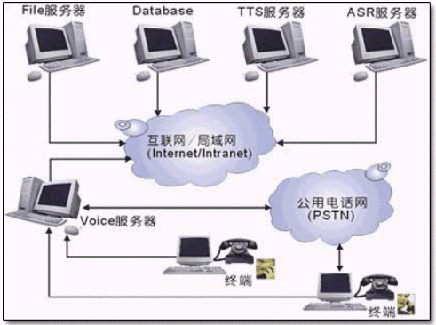 VoPromote開(kāi)放式語(yǔ)音平臺(tái)允許開(kāi)發(fā)商根據(jù)不同應(yīng)用的要求選擇不同的系統(tǒng)組成結(jié)構(gòu)。例如,對(duì)于簡(jiǎn)單的應(yīng)用可以選擇僅僅使用DTMF按鍵輸入方式和語(yǔ)音文件輸出方式,而對(duì)于復(fù)雜的應(yīng)用系統(tǒng)可以選擇允許用戶(hù)DTMF按鍵以及自然語(yǔ)言輸入方式和預(yù)先錄制以及臨時(shí)生成的語(yǔ)音文件輸出。