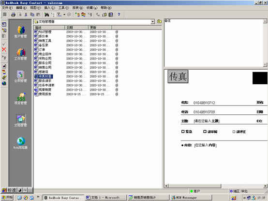 文檔管理模塊主要是將公司內(nèi)部應(yīng)用的公共文檔進(jìn)行統(tǒng)一管理。比如:各類合同模板、銷(xiāo)售工具、報(bào)價(jià)單、訂單、規(guī)章制度、知識(shí)管理、任務(wù)申領(lǐng)單、傳真封面等。(如下圖)