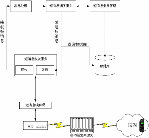 包括上層的短消息業(yè)務(wù)管理部分和中間層的編解碼部分,兩部分在物理上結(jié)合為一個程序,成為短消息服務(wù)系統(tǒng)的軟件部分。
