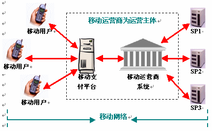 ·平臺運營商起到"插轉(zhuǎn)器"的作用,將銀行、SP、用戶等各利益群體之間錯綜復(fù)雜的關(guān)系簡單化,將多對多的關(guān)系變?yōu)槎鄬σ坏年P(guān)系,從而大大提高了商務(wù)運作的效率;