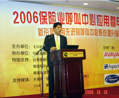 2006年10月18日,2006保險(xiǎn)業(yè)呼叫中心應(yīng)用暨電話營(yíng)銷高峰研討會(huì)在北京天鴻科園大酒店隆重召開(kāi),以下是K3主題演講實(shí)錄:大家上午好!很高興借這個(gè)機(jī)會(huì)跟大家討論外呼系統(tǒng)在保險(xiǎn)行業(yè)的應(yīng)用。到今年為止,我們?cè)谕夂粝嚓P(guān)平臺(tái)建設(shè)上超過(guò)了30多家。在我今天的介紹里,就保險(xiǎn)行業(yè)的特征,在我們應(yīng)用平臺(tái)上怎么應(yīng)用,跟大家做一個(gè)深入的討論。