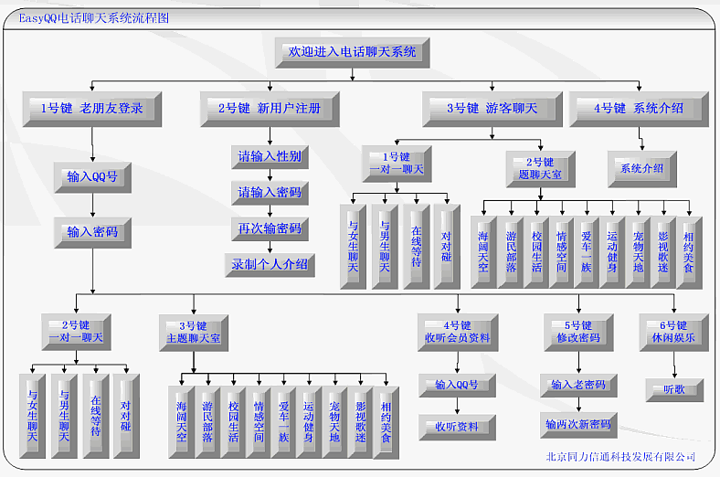 ·EasyQ吧-電話Q吧產(chǎn)品:EasyQ吧是一種即插即用式的電話Q吧實現(xiàn)方式,通過軟硬件的高度集成,交給客戶的是一套可以立即投入運營的電話Q吧系統(tǒng)。IVR接入60/120線,聊天資源64/128方,可以支持32/64個聊天室同時開放。系統(tǒng)基于EasyIVR產(chǎn)品實現(xiàn),可以非常方便地擴展功能和修改流程。