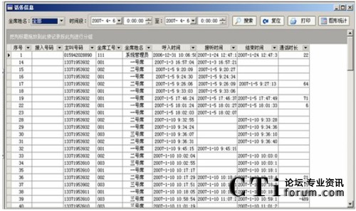 系統(tǒng)提供統(tǒng)計(jì)報(bào)表生成工具,實(shí)現(xiàn)對系統(tǒng)訪問次數(shù)的統(tǒng)計(jì)與分析,并以圖示直觀地反映出用戶關(guān)注的熱點(diǎn)?砂粗鹘刑柎a、局向統(tǒng)計(jì)時(shí)長,并自動(dòng)生成效果圖,直觀表現(xiàn)業(yè)務(wù)發(fā)展。還可根據(jù)主叫統(tǒng)計(jì)時(shí)長,當(dāng)天分析,本周分析,本月分析,提供時(shí)長走勢圖(可以以小時(shí)為單位分析時(shí)長的走勢,也可以以天為單位分析時(shí)長的走勢)
