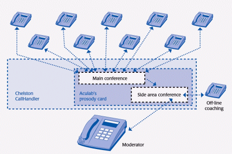 Chelston Call Systems 為RNIB 建立了基于CallHandler-720平臺(tái)、并附有錄音設(shè)施的會(huì)議橋。CallHandler-720是由Aculab Prosody DSP資源板卡集成的,采用開(kāi)放的架構(gòu)并可通過(guò)萬(wàn)維網(wǎng)進(jìn)行控制。
