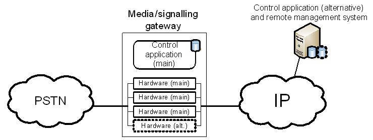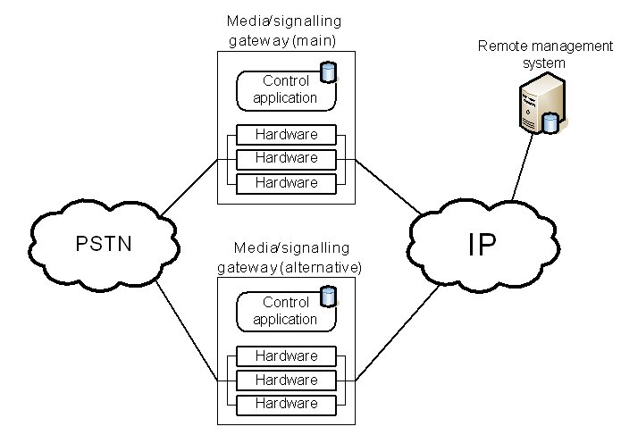 這兩種保護(hù)機(jī)制的區(qū)別可以從下面的例子進(jìn)一步闡述。該事例是一種企業(yè)IP-PSTN網(wǎng)關(guān)應(yīng)用。一般情況下,企業(yè)級的網(wǎng)關(guān)并不采用軟交換架構(gòu),所以媒體和信令網(wǎng)關(guān)功能在同一設(shè)備內(nèi)實現(xiàn)。這類網(wǎng)關(guān)是一個獨立的機(jī)架,內(nèi)裝能實現(xiàn)媒體和信令處理的硬件板卡和控制類應(yīng)用程序。此設(shè)備可以本地管理,也可以采用遠(yuǎn)程管理,如采用標(biāo)準(zhǔn)Web服務(wù)器。