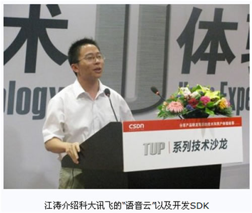 7月16日下午,CSDN TUP第十二期“移動開發(fā)技術(shù)沙龍:次世代人機(jī)交互接口及應(yīng)用開發(fā)”在中國科學(xué)院計算技術(shù)研究所一層報告廳舉行。本次活動邀請了微軟亞洲工程院軟件工程師馬寧、神念科技大中華區(qū)總裁張彤和科大訊飛副總裁江濤,分別在Kinect應(yīng)用開發(fā)、腦際接口技術(shù)的應(yīng)用和語音輸入交互三個方面進(jìn)行了演講和互動,F(xiàn)場爆滿,氣氛熱烈。