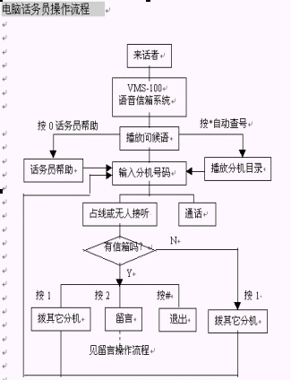 1. 在使用了VMS-100 Plus語音信箱服務(wù)器電腦話務(wù)員智能轉(zhuǎn)接功能的情況下,當(dāng)分機占線或無人接聽時如果您選擇了留言,系統(tǒng)便將您的電話接通至相應(yīng)的留言信箱。
