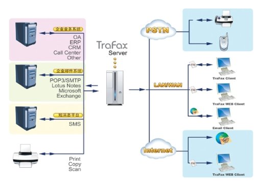 Server高效傳真解決方案。TraFax Server可持續(xù)升級,能夠同企業(yè)應(yīng)用系統(tǒng)系統(tǒng)有效整合,為企業(yè)傳真業(yè)務(wù)運營提供專業(yè)保障。