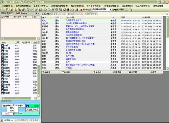 在個(gè)人事務(wù)管理中,坐席人員方便的設(shè)定工作計(jì)劃安排,查詢(xún)呼叫記錄(呼入、呼出、呼入失。瞻l(fā)個(gè)人Email、短信息、個(gè)人公文以及進(jìn)行公文流轉(zhuǎn)等。