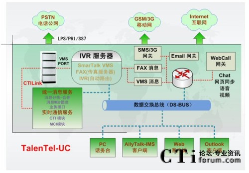 “TalenTel-UC企業(yè)級統一通信系統”采用CTI的核心技術,把企業(yè)通信系統、計算機辦公系統、和業(yè)務流程有機結合起來,充分利用企業(yè)現有設備資源,實現IT系統的易用性和通信系統的實用性,從而推動企業(yè)信息化、無紙化辦公進程,降低辦公成本,提高辦公效率,對行政辦公模式的變革產生深遠的影響。