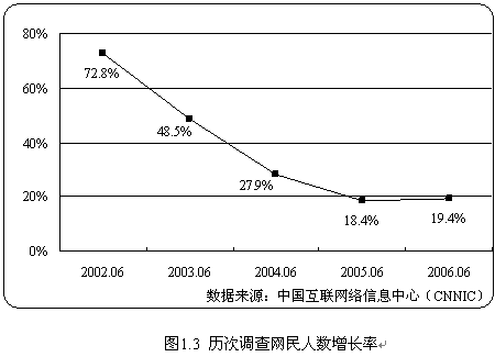 中國(guó)互聯(lián)網(wǎng)繼續(xù)保持高速發(fā)展,對(duì)中國(guó)互聯(lián)網(wǎng)絡(luò)信息中心(CNNIC)歷次調(diào)查中這些基礎(chǔ)性統(tǒng)計(jì)數(shù)據(jù)的深入分析,有助于從宏觀角度更深刻地認(rèn)識(shí)互聯(lián)網(wǎng)絡(luò)在中國(guó)的發(fā)展?fàn)顩r。