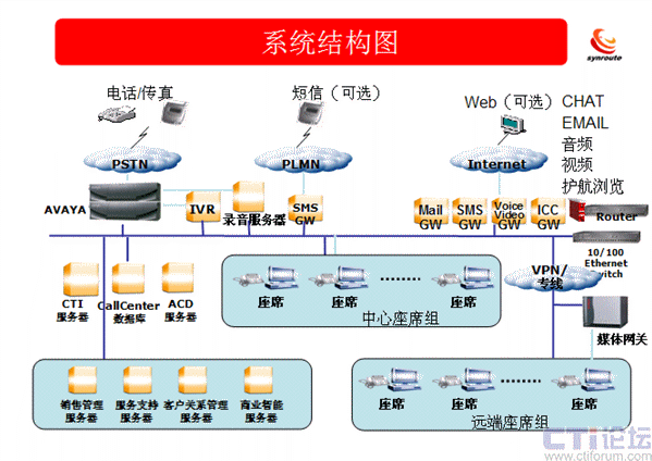 北京易仟億呼叫運營中心采用商路通(www.Synroute.com)Hi-Link中間件以及Avaya的8720交換機組建系統(tǒng)。系統(tǒng)初期規(guī)模168座席、7條30B+D中繼、30路IVR、30路傳真、168路坐席并線錄音。系統(tǒng)整合了各部門的業(yè)務(wù)功能,合理地調(diào)配服務(wù)資源,對外樹立了公司統(tǒng)一的服務(wù)模式和服務(wù)形象,并為客戶取得了良好的效益。