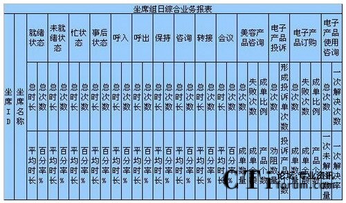 c)如果想對(duì)這個(gè)組的坐席進(jìn)行整體的坐席狀態(tài)進(jìn)行考核,以便確定工作負(fù)荷、績(jī)效考核,形成每天、每月、每季度、每年、按組、按技能,平均、總計(jì)、總合、最大、最小數(shù)據(jù)比較的表格、圖表,對(duì)不起要么你放棄這個(gè)想法,要么你重新開發(fā)軟件進(jìn)行計(jì)算。