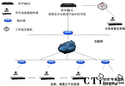 華平根據(jù)東森控股的實際需求,為用戶搭建了覆蓋上海、南昌、臺州辦公區(qū)、臺州營業(yè)部的高標清混合組網(wǎng)和軟硬件混合組網(wǎng)方案。系統(tǒng)基于公共互聯(lián)網(wǎng)實現(xiàn)部署,并充分利用了華平多種網(wǎng)絡接入混合的優(yōu)勢,并采取MCU雙網(wǎng)卡接入解決方案,全面實現(xiàn)了電信、網(wǎng)通的網(wǎng)絡良好互通,系統(tǒng)極大的拓展了應用的范圍,即使在差旅途中,只要能接入Internet網(wǎng)絡,用戶就可以輕松地參與會議交流,如同身與各方坐一個會議室。系統(tǒng)還提供強大的數(shù)據(jù)輔助功能,參會者可以將各種需要交流的數(shù)據(jù)、圖形、報表、文字等信息同步顯示給所有相關(guān)人員,方便的進行工作交流,業(yè)務匯報和討論等,使異地溝通變的更加簡單和自如。