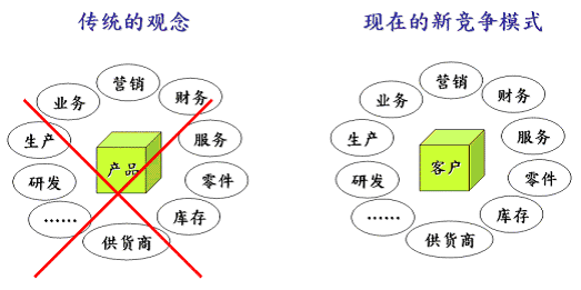 在CRM系統(tǒng)架構中,如何持續(xù)和客戶保持好關系、進而提高客滿意度是最主要目標之一,也是客戶關系管理架構的核心價值所在。現(xiàn)在企業(yè)的競爭模式已經(jīng)從以往以產(chǎn)品為中心的思考模式,轉變到以客戶為中心的思考模式。(如圖一)