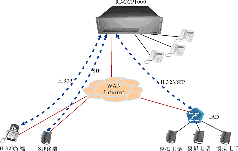 - 多個位于不同地點的RT-CCP1000通過廣域IP網互連,組成一個統(tǒng)一系統(tǒng),實現(xiàn)遠程無縫通信。