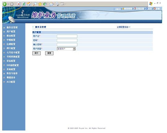 如果說節(jié)省了幾臺服務(wù)器和CTI中間軟件的開支對于用戶而言僅僅是一個(gè)直觀的體驗(yàn),那么RT-CCP1000的維護(hù)和管理將對用戶產(chǎn)生長久的影響,在維護(hù)和管理上仍然堅(jiān)持著一體化核心理念的RT-CCP1000平臺,將用戶從多個(gè)廠家的設(shè)備互聯(lián)和維護(hù)中(程控交換機(jī)/CTI服務(wù)器/IVR服務(wù)器/錄音服務(wù)器)徹底的解放出來。RT-CCP1000基于WEB方式的全中文操作維護(hù)界面始終走在業(yè)界的最前沿。