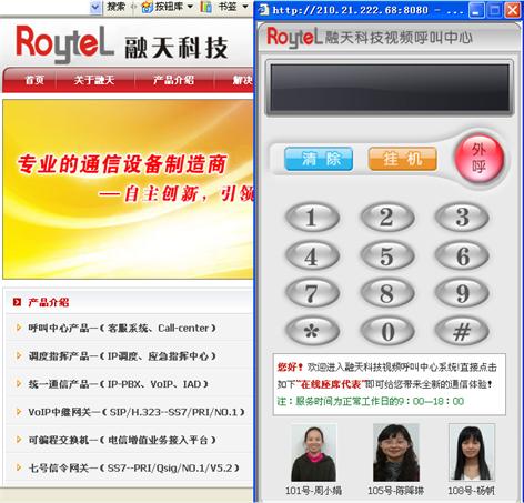 融天科技視頻呼叫中心都采用了非常先進(jìn)的Web-Call和視頻通信技術(shù),將軟電話控件嵌入到企業(yè)網(wǎng)站上,而對(duì)于企業(yè)來說一切都變得非常簡(jiǎn)單,無論何時(shí)何地,客戶在訪問企業(yè)網(wǎng)站時(shí),可以通過傻瓜式的WEB界面點(diǎn)擊在線視頻座席,只要客戶PC裝有麥克風(fēng)和攝像頭即可以網(wǎng)頁(yè)方式進(jìn)行面對(duì)面的進(jìn)行視頻和語(yǔ)音交流,同時(shí)也能向用戶播放相關(guān)的產(chǎn)品資訊,讓您抓住即將流失準(zhǔn)客戶,直接為您的企業(yè)創(chuàng)造價(jià)值。