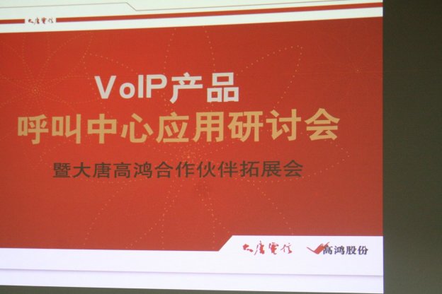 2006年9月8日,由中國(guó)VoIP業(yè)界的引領(lǐng)者大唐高鴻數(shù)據(jù)網(wǎng)絡(luò)技術(shù)股份有限公司(股票簡(jiǎn)稱:高鴻股份;股票代碼:000851)主辦的大唐高鴻VoIP產(chǎn)品呼叫中心應(yīng)用研討會(huì)在北京大唐電信集團(tuán)主樓隆重舉行,此次會(huì)議由CTI論壇協(xié)辦。這是會(huì)議是大唐高鴻攜其VoIP產(chǎn)品進(jìn)軍呼叫中心領(lǐng)域的里程碑。參加會(huì)議的代表來(lái)自虛擬運(yùn)營(yíng)商、VoIP公司、呼叫中心公司,企業(yè)行業(yè)客戶以及知名媒體共120余人,大唐高鴻還向會(huì)議代表介紹了其VoIP產(chǎn)品與呼叫中心廠商的合作計(jì)劃,預(yù)示著大唐高鴻正式向全國(guó)展開VoIP產(chǎn)品在呼叫中心行業(yè)中的應(yīng)用的市場(chǎng)攻勢(shì)。