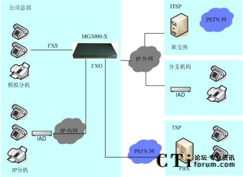 MG3000-X100替代傳統(tǒng)PBX交換機應用方案 2009-09-23