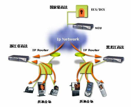 MCU視頻會議交互平臺,組成了由24臺RADVISION MCU實(shí)現(xiàn)的最高法院-22個省級法院-地(市)法院的3級視頻會議網(wǎng)絡(luò)。RADVISION建設(shè)的視頻會議系統(tǒng),既可以實(shí)現(xiàn)每個省單獨(dú)同時或分時靈活組建省—地(市)兩級視頻會議,也可以召開最高法院—22個省級法院—地(市)法院的3級視頻會議,并實(shí)現(xiàn)了最高法院對地(市)法院視頻會議終端的直接控制和管理。