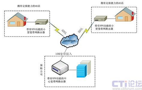 在保險(xiǎn)公司數(shù)據(jù)交換控制中心配置一臺(tái)具有VPN功能的中心寬帶網(wǎng)路由器,每條ADSL配置一個(gè)具有VPN功能的小型寬帶網(wǎng)路由器,并通過設(shè)置路由器即可成功建立起VPN網(wǎng)絡(luò)。這種網(wǎng)絡(luò)結(jié)構(gòu)不但有效的節(jié)約了成本,而且日后系統(tǒng)的擴(kuò)容的成本也非常的低,每增加一個(gè)點(diǎn)只需要申請(qǐng)一條ADSL就可以了。