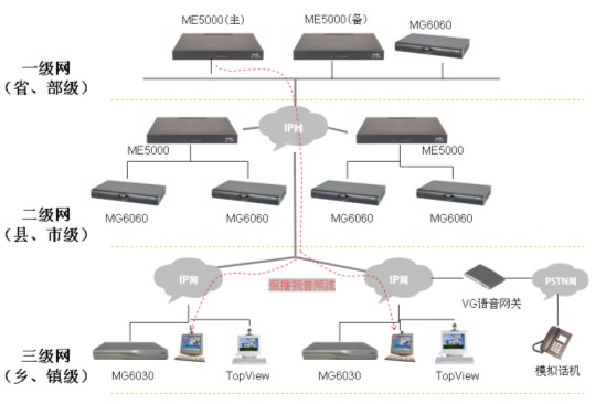 采用雙機熱備技術(shù),2臺ME5000通過IP網(wǎng)絡(luò)(局域網(wǎng)、廣域網(wǎng))在線熱備。出現(xiàn)意外情況時,備份ME5000將及時接替原MCU將會議繼續(xù)召開,不需要終端進行任何操作,保障會議延續(xù)。