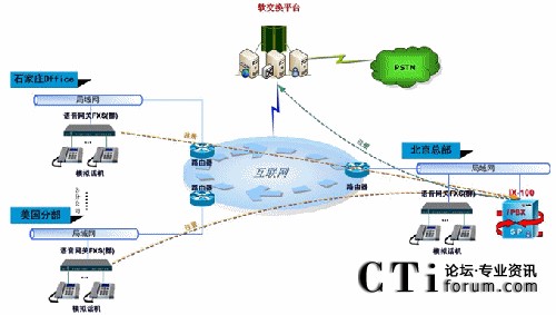 在香港和美國(guó)的分部,在今后需要統(tǒng)一的時(shí)候,也可通過小型IPPBX、FXS語音網(wǎng)關(guān)、或者IP話機(jī)與總部進(jìn)行互聯(lián)互通,做到異地完全虛擬統(tǒng)一,內(nèi)部互通免費(fèi),并在統(tǒng)一的信息管理系統(tǒng)中提高一體化辦公的效率。