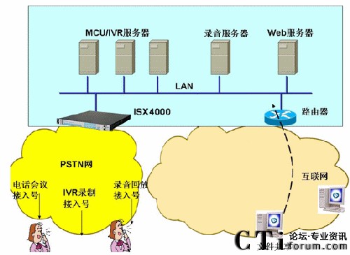 STOP SERVICE)平臺,是當前和未來電信運營商(TCO)及虛擬服務提供商(SP/CP)增值業(yè)務規(guī)劃的最佳選擇,特別是中國重組后的3大運營商都具備全業(yè)務運營資格,正在規(guī)劃前所未有的全業(yè)務運營平臺(融合有線和無線、融合語音和數據、融合2G和3G、融和傳統(tǒng)PSTN和NGN網絡、融合電信網和互聯(lián)網),怎樣的設備才能問鼎和支撐這樣的全業(yè)務平臺?不妨仔細研究ISX4000的豪華單機和級聯(lián)配置:單機支持最大128E1(SS7、PRI)光電接口接入、4096路語音資源、4096路會議資源、多達6464路IP(G.711-6464路、G.729-2688路、G.723-2048路)、768路傳真資源、1280路FSK資源(用于E-POS)、1024路視頻資源。通過簡單易用的管理維護工具OAM可以對上述資源任意組合、動態(tài)配置、平滑升級。不僅如此,ISX4000本機同步配置的DSP采用高性能的回聲消除和音質增強(EC