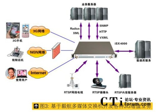 隨著中國3G用戶的日益增多,基于3G網(wǎng)絡(luò)的增值業(yè)務(wù)也日益受到各大運(yùn)營商重視,而且運(yùn)營商也寄希望于形形色色的增值業(yè)務(wù)能夠帶動(dòng)3G用戶的增長,針對這種狀況以及國內(nèi)三種運(yùn)營商制式(TD-SCDMA、WCDMA、CDMA2000),毅航發(fā)布專門針對3G增值業(yè)務(wù)或2G-3G混合增值業(yè)務(wù)的真正一體化開發(fā)平臺(tái),基于此平臺(tái)開發(fā)者無需關(guān)心3G網(wǎng)絡(luò)接口、3G網(wǎng)絡(luò)制式、3G網(wǎng)絡(luò)信令及3G視頻編解碼而直接開發(fā)3G業(yè)務(wù)流程即可,是目前國內(nèi)外最簡單、單機(jī)承載容量最大的3G增值業(yè)務(wù)開發(fā)平臺(tái),是在毅航通信 iSX4000 通用業(yè)務(wù)平臺(tái)的基礎(chǔ)上增加視頻模塊即可將原來在2G上的所有應(yīng)用平滑升級到3G,升級周期只需要1-2周即可,因此基于毅航增值業(yè)務(wù)平臺(tái)的3G示范應(yīng)用也很快會(huì)在中國三個(gè)不同制式的3G網(wǎng)絡(luò)上開通。