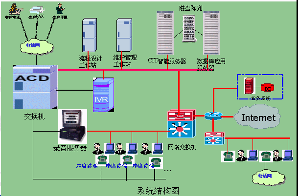 - 接入平臺采用呼叫中心專用交換設(shè)備,局網(wǎng)帶寬100M