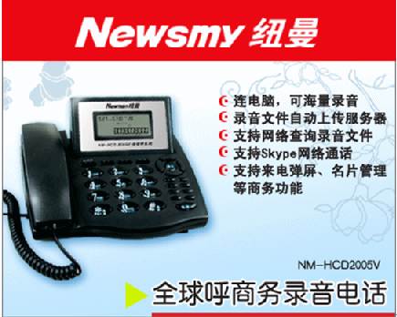 近日,北京紐曼公司(www.newman-cti.com)推出的一款具備強大商務管理功能的NM-HCD2005V全球呼商務錄音電話,以其強大的錄音和獨特的客戶信息管理功能獲得了消費者的青睞。據了解,這款商務錄音電話除了具備傳統(tǒng)錄音電話的錄音和留言的功能之外,還支持網絡查詢、來電彈屏顯示、名片管理、撥打網絡電話、集中錄音管理,可將錄音上傳到企業(yè)服務器等強大實用的商務功能。