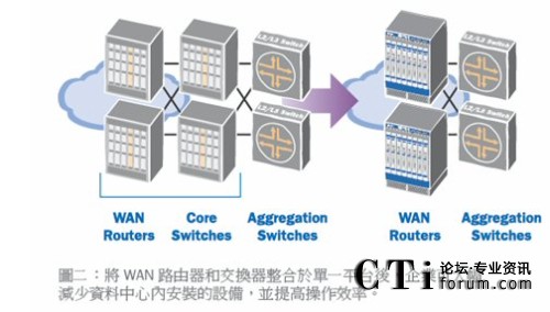 今天,許多WAN服務(wù)是由以太網(wǎng)設(shè)備提供的,因此必須在廣域網(wǎng)和局域網(wǎng)設(shè)備之間進(jìn)行介質(zhì)轉(zhuǎn)換,而新一代交換機(jī)則可省去這一步驟。許多新式交換平臺可提供穩(wěn)定的路由功能,并支持OC-12和其他廣域網(wǎng)接口,使得IT人員能夠?qū)V域網(wǎng)路由和局域網(wǎng)核心交換功能全部整合到下一代交換機(jī)平臺中。通過扁平化的網(wǎng)絡(luò)架構(gòu),企業(yè)可減少資本支出和操作費(fèi)用,同時還可降低網(wǎng)絡(luò)復(fù)雜度并提升正常運(yùn)營的時長。