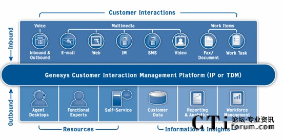 Genesys 能讓所有互動媒介包括:語音、電子郵件、因特網(wǎng)等被集中管理,通過統(tǒng)一、集中的控制可以管理與設(shè)定所有的應(yīng)用組件。