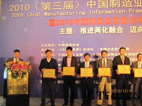 CTI論壇(ctiforum)12月27日消息(記者 潘婷婷):12月16日,由中國信息協(xié)會(huì)聯(lián)合我國十幾家制造業(yè)行業(yè)協(xié)會(huì)共同舉辦的“2010(第三屆)中國制造業(yè)信息化推進(jìn)大會(huì)暨中國制造業(yè)信息化年度頒獎(jiǎng)盛典”在北京成功舉行。中國信息協(xié)會(huì)會(huì)長盧時(shí)徹、中國機(jī)械工業(yè)聯(lián)合會(huì)特別顧問、國家信息化專家咨詢委員會(huì)委員朱森第、工業(yè)和信息化部信息化推進(jìn)司安筱鵬等領(lǐng)導(dǎo)出席此次活動(dòng)并發(fā)表演講。會(huì)上,八百客獲得“2010年度CRM領(lǐng)軍企業(yè)”大獎(jiǎng),至此,八百客已經(jīng)斬獲“中國云計(jì)算領(lǐng)軍企業(yè)”和“CRM領(lǐng)軍企業(yè)”雙料大獎(jiǎng),為2010年畫上了圓滿的句號。