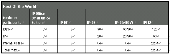下列表格是不同型號(hào)IP Office的不同接口形式的最大會(huì)議容量: