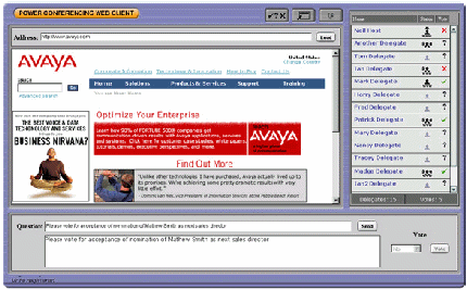 作為電話(huà)會(huì)議的補(bǔ)充,會(huì)議主席可以建立基于web的應(yīng)用。通過(guò)這樣的web接口,會(huì)議主席和與會(huì)人員不僅看到與會(huì)人員的狀態(tài),還可以設(shè)置聽(tīng)眾只聽(tīng),聽(tīng)和說(shuō),可以看到web界面的權(quán)限。web