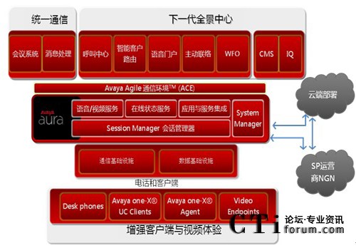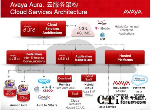 - 當(dāng)其他廠商還在爭論公有云和私有云的優(yōu)劣時,Avaya已經(jīng)開始部署企業(yè)的私有云—Avaya Aura 和運(yùn)營商的公有云之間如何和諧共處;企業(yè)用戶的統(tǒng)一通信功能完全基于”按需服務(wù)激活”模式;