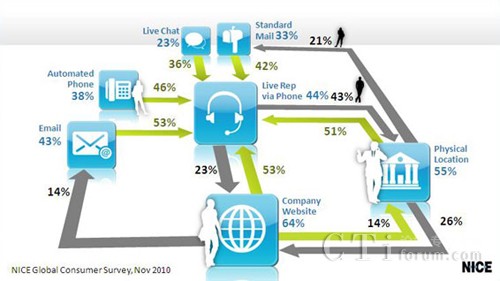 NICE最近宣布了其客戶渠道偏好調(diào)查的主要發(fā)現(xiàn),調(diào)查對(duì)象為美國、英國和澳大利亞境內(nèi)年齡段在18歲至65歲的2000多人。該調(diào)查分析了他們與金融服務(wù)、電信、零售、旅游、保險(xiǎn)及公用事業(yè)等行業(yè)之間的首選聯(lián)絡(luò)渠道。調(diào)查顯示客戶往往依靠網(wǎng)絡(luò)、互動(dòng)式語音應(yīng)答渠道(IVR)、聊天工具或者電子郵件作為與企業(yè)或服務(wù)供應(yīng)商的首要接觸點(diǎn)。然而,如果他們無法在首次聯(lián)絡(luò)過程中解決問題,則客戶聯(lián)絡(luò)中心便成為解決問題的二級(jí)渠道。