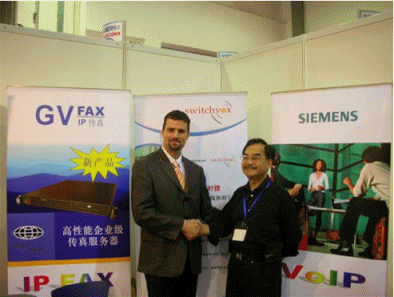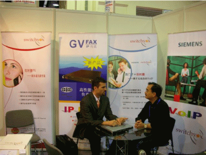 美國訊時捷科技公司作為IP-PBX專業(yè)提供商于2006年5月23-26日參加了最具權(quán)威的2006中國國際信息通信展覽會,在上海光大會展中心的B019展位展示了Switchvox IPX與戰(zhàn)略合作伙伴Siemens配套IP終端話機。此次展會,我們還推出了企業(yè)級新一代的IP傳真服務(wù)器GV-FAX,此次大會吸引了眾多全國的渠道代表、廠商、集成商和媒體參加,對產(chǎn)品感興趣的來賓絡(luò)繹不絕。