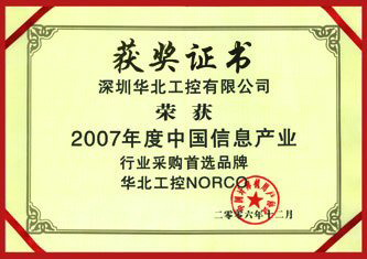 2007年1月16日,由中國計算機(jī)用戶協(xié)會(簡稱CCUA)主辦的“中國計算機(jī)用戶協(xié)會2006年度企業(yè)及產(chǎn)品推介頒獎大會” 在北京世紀(jì)金源大飯店隆重召開,通過對中國境內(nèi)從事IT產(chǎn)品生產(chǎn)、銷售、集成和服務(wù)企業(yè)的經(jīng)營規(guī)模、服務(wù)能力、產(chǎn)品使用效果、企業(yè)誠信和持續(xù)發(fā)展能力等多項指標(biāo)進(jìn)行綜合評定,揭曉了中國信息產(chǎn)業(yè)2006年度優(yōu)秀企業(yè)評選與產(chǎn)品推介活動結(jié)果。華北工控憑借其在業(yè)內(nèi)深入人心的影響,再次獲得“2006年度中國信息產(chǎn)業(yè)誠信企業(yè)獎”和“2007年度中國信息產(chǎn)業(yè)行業(yè)采購首選品牌”。