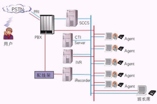 其中交換機采用Meridian,軟件平臺采用浩豐時代的系列解決方案:自動語音應答系統(tǒng)IVR2000®,CTI平臺VOM®,坐席應用系統(tǒng)iAgent®和數(shù)字錄音監(jiān)聽系統(tǒng)iRecorder?。該系統(tǒng)既可以利用強大的呼入排隊功能處理客戶請求,也可以利用呼出功能為客戶提供主動服務。