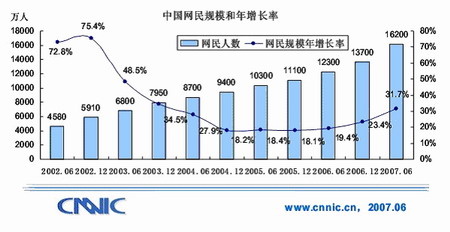 1、上網(wǎng)人數(shù)持續(xù)發(fā)展,截止到2007年6月底,已達(dá)1.62億。手機(jī)上網(wǎng)人數(shù)已達(dá)4430萬(wàn),而上一年這個(gè)數(shù)字為1700多萬(wàn)。