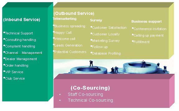 According to international standard, Sydnas has become a leading Tele-service provider in China. Sydnas is able to provide professional outsourcing service; telesales; telemarketing; tele-survey; system integration; training program; and other services integrated.