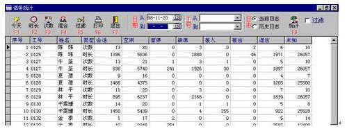 統(tǒng)計(jì)結(jié)果顯示直觀簡(jiǎn)潔, 支持不同的形式, 包括表格, 直方圖和曲線圖等,同時(shí)支持對(duì)統(tǒng)計(jì)分析結(jié)果的存儲(chǔ)和報(bào)表輸出。來(lái)話報(bào)表統(tǒng)計(jì)可按工號(hào)、時(shí)段、技能、班組等方式分類(lèi)選擇,報(bào)表內(nèi)容包括離席狀態(tài)、就緒狀態(tài)、暫退狀態(tài)、ACD狀態(tài)、NACD狀態(tài)、呼出狀態(tài)、、中繼狀態(tài)、總次數(shù)、分次數(shù)。