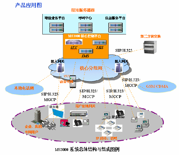 | MS3000核心平臺組成 iEX--IP電話交換機(jī) IMS--綜合管理系統(tǒng) SBS--綜合計費(fèi)系統(tǒng) VPU--語音代理單元 iTalk--軟電話終端 |