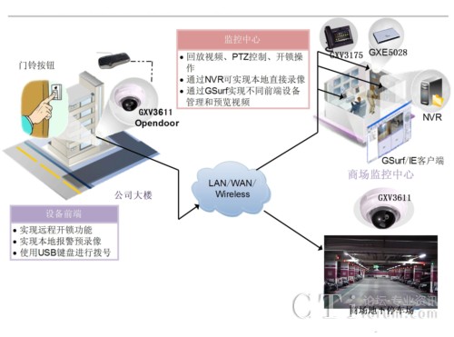 為了方便商場(chǎng)店主以及購物顧客,Millennium Mall商場(chǎng)內(nèi)設(shè)計(jì)了一個(gè)6層的地下停車場(chǎng),商場(chǎng)管理員通過網(wǎng)絡(luò)攝像機(jī)監(jiān)控和監(jiān)督停車費(fèi)收納員,通常到商場(chǎng)購物的顧客會(huì)提前預(yù)存一定的停車費(fèi)用。潮流網(wǎng)絡(luò)GXV3611網(wǎng)絡(luò)半球形網(wǎng)絡(luò)攝像機(jī),GXV3601高清網(wǎng)絡(luò)攝像機(jī)分布安裝在商場(chǎng)以及地下停車場(chǎng)關(guān)鍵角落,每周全天7x24小時(shí)的監(jiān)控,隨時(shí)、隨地、多種終端的實(shí)時(shí)視頻觀看。潮流網(wǎng)絡(luò)GXV3140、GXV3175多媒體視頻電話則安裝在商場(chǎng)室內(nèi),結(jié)合QuadroM32x門禁系統(tǒng)作為IP方案的擴(kuò)展,并只允許商場(chǎng)停車費(fèi)出納員通過視頻話機(jī)控制網(wǎng)絡(luò)攝像機(jī)。當(dāng)門禁系統(tǒng)被觸發(fā)時(shí),視頻電話和攝像機(jī)視頻流將實(shí)時(shí)抓拍畫面和錄像,并立即將視頻流和抓拍畫面直接傳輸反饋到保衛(wèi)安全科辦公室或指定的相關(guān)安全部門,幫助第一時(shí)間解決威脅,避免商場(chǎng)財(cái)產(chǎn)和人員受到破壞或損傷。當(dāng)然,商場(chǎng)職工也可通過潮流網(wǎng)絡(luò)視頻電話或者手中的智能手機(jī)撥打呼叫網(wǎng)絡(luò)攝像機(jī),觀看監(jiān)控畫面和雙向語音對(duì)話。例如,保衛(wèi)科保安人員或辦公室管理人員定時(shí)使用GXV3140視頻電話撥打GXV系列的網(wǎng)絡(luò)攝像機(jī)監(jiān)控追蹤現(xiàn)場(chǎng),Grandstream的Gsurf免費(fèi)視頻管理軟件協(xié)助管理,確保停車場(chǎng)收納員的安全。商場(chǎng)通過使用VoIP通信與潮流網(wǎng)絡(luò)的終端安全有效地管理維護(hù)商場(chǎng)的有序運(yùn)行,管理商場(chǎng)。