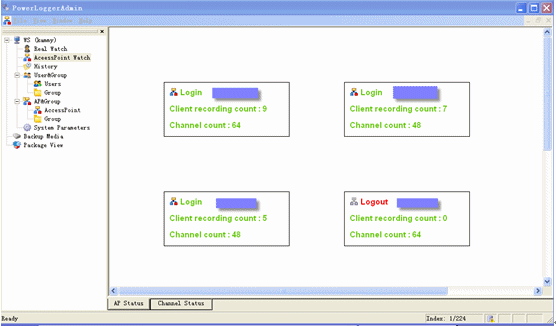 管理員通過(guò)管理員程序,遠(yuǎn)程登錄到中心點(diǎn)錄音服務(wù)器實(shí)時(shí)查看各個(gè)接入點(diǎn)的總體以及各個(gè)錄音通道的狀態(tài)